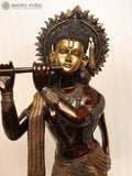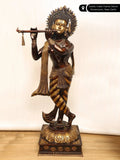 79" Super Large Murli Krishna Idol Adorned with Long Scarf | Handmade Brass Statue