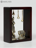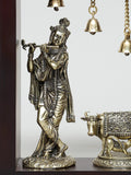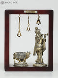 9" Superfine Fluting Lord Krishna with Cow and Calf | Wood Framed Brass Sculptures | Wall Hanging