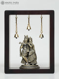 9" Wood Framed Superfine Radha - Krishna in Brass | Wall Hanging