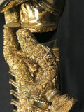 Lord Krishna Standing Wall Hanging Brass Sculpture is a brass statue designed as a wall hanging decorative figure that embodies a classic portrayal of the Hindu deity Krishna. From Exotic India Art, a heritage brand known for authentic Indian art, it reflects traditional Indian craftsmanship. Cast in brass and finished with an aged patina, the piece highlights hand finishing on the robes, flute, and crown. Artisans apply careful engraving and polishing to bring out subtle highlights and delicate textures that catch the light from different angles. Krishna is a central figure in Indian art, often represented with a flute and peacock feather crown. This standing wall hanging form showcases a serene yet expressive stance that invites contemplation in a home temple or meditation corner. Placement and use include:
