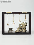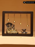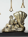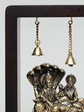 10" Superfine Lakshmi - Narayan Seated on Sheshnag with Tortoise Diya | Wood Framed Brass Sculpture | Wall Hanging