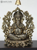 12" Superfine Sitting Lakshmi Ganesha with Dangling Bells | Wood Framed Brass Sculptures | Wall Hanging Dimensions