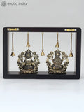 12" Superfine Sitting Lakshmi Ganesha with Dangling Bells | Wood Framed Brass Sculptures | Wall Hanging
