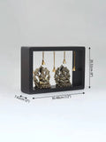 The 12" Superfine Sitting Lakshmi Ganesha with Dangling Bells | Wood Framed Brass Sculptures | Wall Hanging is a handcrafted brass sculpture presented in a warm wood frame designed for wall display. The composition pairs the serene seated Lakshmi with Ganesha, accented by gently swinging bells that impart a subtle motion.