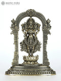 4" Small Superfine Blessing Goddess Lakshmi Standing on Lotus with Kirtimukha Prabhavali | Brass Statue Dimensions