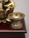 In Indian artistic tradition, Dhanalakshmi is associated with prosperity and auspiciousness, and this representation evokes ritual illumination without prescribing belief. The piece emphasizes balance, grace, and the craft of metalwork.