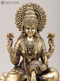 9" Superfine Four Armed Goddess Lakshmi with Peacock Lamp and Wood Base | Brass Idol is a brass sculpture that presents the goddess Lakshmi in a four armed form as a decorative spiritual idol. In traditional Indian art Lakshmi represents prosperity and abundance, and this piece expresses grace through its poised figure and ornate jewelry.