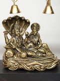 9" Superfine Lakshmi - Narayan Seated on Sheshnag with Tortoise Diya | Wood Framed Brass Sculpture | Wall Hanging