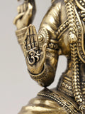 Meticulously crafted in brass with a warm antiqued patina, the sculpture is hand finished to reveal the delicate folds of the sari, the jewelry, and the lotus petals. Each line is subtly accented to emphasize balance and grace.