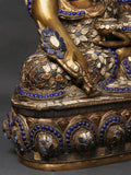 16" Healing Buddha Brass Statue with Inlay Work | Medicine Buddha Statue