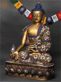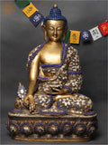 16" Healing Buddha Brass Statue with Inlay Work | Medicine Buddha Statue Dimensions