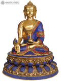 The 16" (Tibetan Buddhist Deity) The Medicine Buddha - Scenes from the Life of Buddha Depicted on Reverse In Brass | Handmade | Made In India is a brass statue in the spiritual idol category, crafted to serve as a contemplative figure for a shrine or refined decorative display.