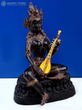12" Brass Nepalese Form of Saraswati with Wooden Pedestal Dimensions