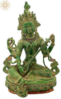 The 12" Seated Chaturbhujadharini Saraswati Brass Idol, Nepalese Iconography is a brass sculpture presenting Saraswati in a seated four-armed form drawn from Nepalese iconography. This piece serves as a devotional object and a refined decorative figure for spaces that honor learning and the arts.
