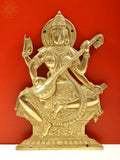 14" Brass Saraswati Wall Hanging Statue Ð Elegant Goddess Decor for Home & Office