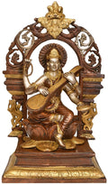 15" The Goddess of Music -Saraswati In Brass | Handmade | Made In India