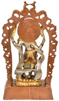 The 17" Standing Goddess Saraswati with Peacock In Brass | Handmade | Made In India is a brass statue of the Hindu goddess Saraswati, depicted standing with a peacock in a poised, graceful posture. This handcrafted sculpture belongs to the category of brass statuary and is suited for sacred spaces and refined display. Cast in brass using traditional methods, the sculpture is finished by hand to reveal a warm patina and carefully enhanced details. The artisans attend to fine elements such as the draped garments, jewelry, and serene facial features, delivering a calm, dignified presence. This piece reflects Exotic India Art's commitment to authentic Indian art and handcrafted collectibles. In traditional Indian iconography, Saraswati is associated with knowledge and the arts, and the peacock motif adds visual and cultural resonance. The overall form emphasizes balance and grace that resonate with contemplative spaces and art lovers alike. This sculpture fits well in a home temple or meditation space, serves as a decor accent on a shelf or mantel, and makes a thoughtful gift for collectors or enthusiasts seeking a refined example of Indian brass artistry.