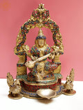 9" Brass Goddess Saraswati with Inlay Work