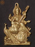 9'' Goddess Saraswati Wall Hanging Brass Statue