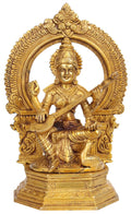 9" Goddess Saraswati with Aureole In Brass | Handmade | Made In India