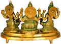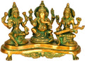 9" Three Auspicious Deities - Lakshmi Ganesha and Saraswati In Brass | Handmade | Made In India