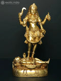 11" Brass Goddess Kali Statue Standing atop Lord Shiva
