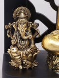 12" Superfine Lord Shiva with Sons Ganesha and Karttikeya | Brass Statues with Designer Wood Frame Dimensions