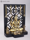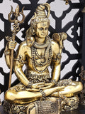 12" Superfine Lord Shiva with Sons Ganesha and Karttikeya | Brass Statues with Designer Wood Frame