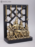 12" Superfine Shiva Family with Dangling Bells | Brass Statue with Wood Frame