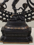 Cast in solid brass and finished with a subtle antique patina, the statue reveals meticulous handwork in every contour. The poised figure features the drum, the circle of fire, and the raised leg with balanced grace. Fine detailing extends to the hair, ornaments, and pedestal base.