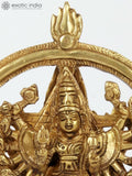 Cast in solid brass, the piece carries a warm gold toned finish and finely sculpted features. Handcrafted by skilled artisans, every contour of Vishnu and his iconographic attributes is carefully defined, with the Narasimha design on the reverse finished to match the front. As a product from Exotic India Art, it reflects the brand's commitment to authentic Indian art and handcrafted collectibles.