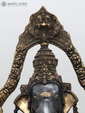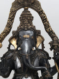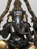24" Black and Gold Blessing Lord Ganesha with Kirtimukha Prabhavali | Brass Statue