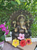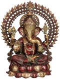 25" Large Size Lord Ganesha Seated on Lotus with Prabhavali and Kirtimukha in Brass | Handmade | Made In India