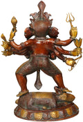 27" Ganesha the Spiritual Warrior In Brass | Handmade | Made In India is a brass statue that sits within Exotic India Art's collection as a handmade spiritual figure and decorative sculpture. It is cast in brass and finished by hand to a warm, sunlit tone, with a subtle patina that deepens the contours of the form. Skilled artisans shape and refine the details of the vestments, crown, and physical presence to convey movement and purposeful resolve. In Indian art, Ganesha is a prominent symbol of wisdom, beginnings, and the removal of obstacles. This representation as a spiritual warrior emphasizes courage and focus through its stance and ornamentation, offering a thoughtful study for art lovers and collectors alike. Suitable for a home temple, meditation space, shelf or altar, or as a refined decor accent in living rooms, studies, or libraries. It also makes a meaningful gift for collectors who value handcrafted brass sculpture and Indian artistic heritage. To preserve the finish, dust with a soft cloth and avoid harsh cleaners or excessive moisture.