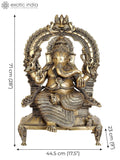 28" Large Size Majestic Ganesha Enshrining the Throne with Mahakala Arch | Handmade Brass Statue Dimensions
