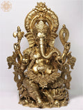 30'' Large Alluring Ornamented Ganesha Seated On Lotus | Brass Statue Dimensions