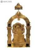 84" Large Lord Ganesha with a Traditional Prabhavali and Parasol Atop | Handmade Brass Statue