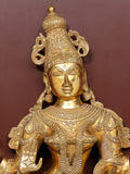 48" Large Four Armed Standing Goddess Lakshmi | Wood Framed Brass Sculpture | Wall Hanging Dimensions