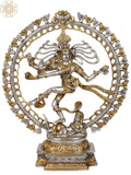 28" Large Size Lord Shiva as Nataraja in Silver and Golden Hues In Brass Dimensions