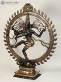 72" Large Black and Golden Nataraja (Dancing Lord Shiva) | Brass Statue is a brass statue and handcrafted sculpture that depicts Nataraja, the Dancing Lord Shiva, in the cosmic dance of creation.