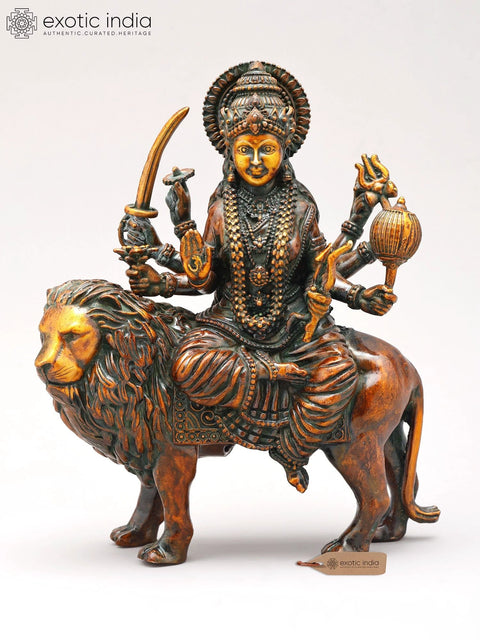 16" Goddess Durga on Her Mount Lion In Brass | Handmade | Made In India