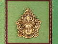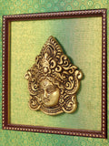 11" Framed Brass Goddess Durga Face Wall Hanging