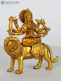 5" Small Eight Armed Goddess Durga Brass Idol Seated on Lion