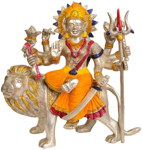 11" Triple Hued Goddess Durga In Brass | Handmade | Made In India