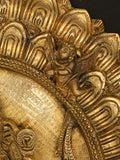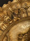 10" Lord Ganesha Wall Hanging Lotus Plate cast in solid brass and finished with a warm, even patina, it showcases careful handcrafting and detailed relief work. The circular lotus base frames a contemplative figure, with subtle face features and the characteristic curved trunk rendered through precise chiseling and polishing.