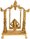 11" Ganesha Idol Seated on Swing | Handmade Brass Statue | Made in India