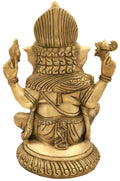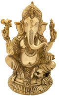 12" Lord Ganesha Seated on Small Round Chowki In Brass | Handmade | Made In India