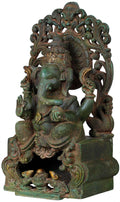 13" King Ganesha Seated on Kirtimukha Throne In Brass | Handmade | Made In India