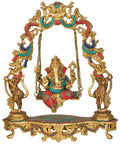 18" Brass Lord Ganesha Statue on Swing with Inlay Work | Handmade | Made in India