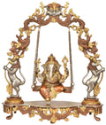 18" Lord Ganesha Statue on a Swing with Kirtimukha atop in Brass | Handmade | Made in India